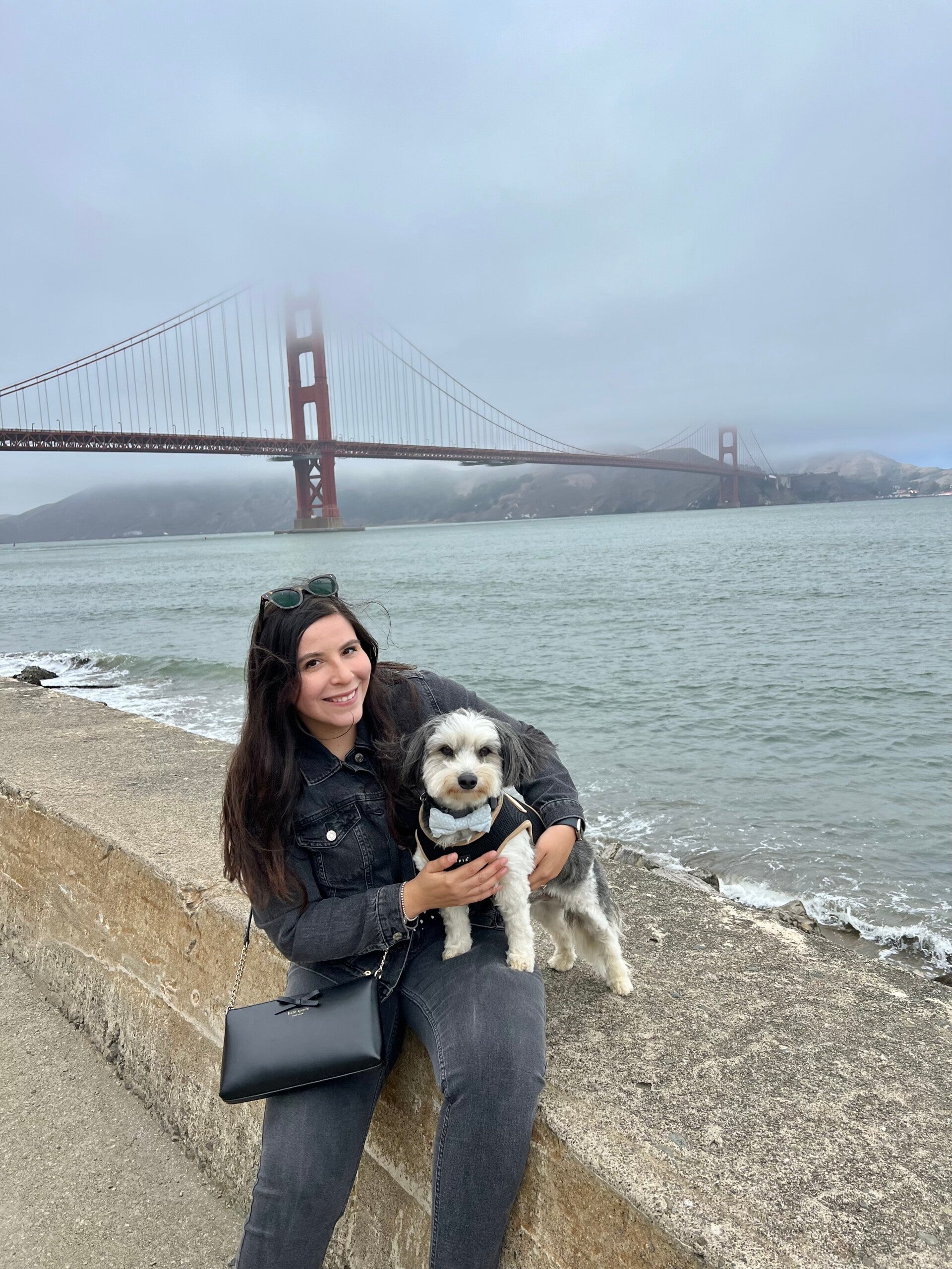 Below: Carla with Ollie enjoying a scenic Golden Gate stroll